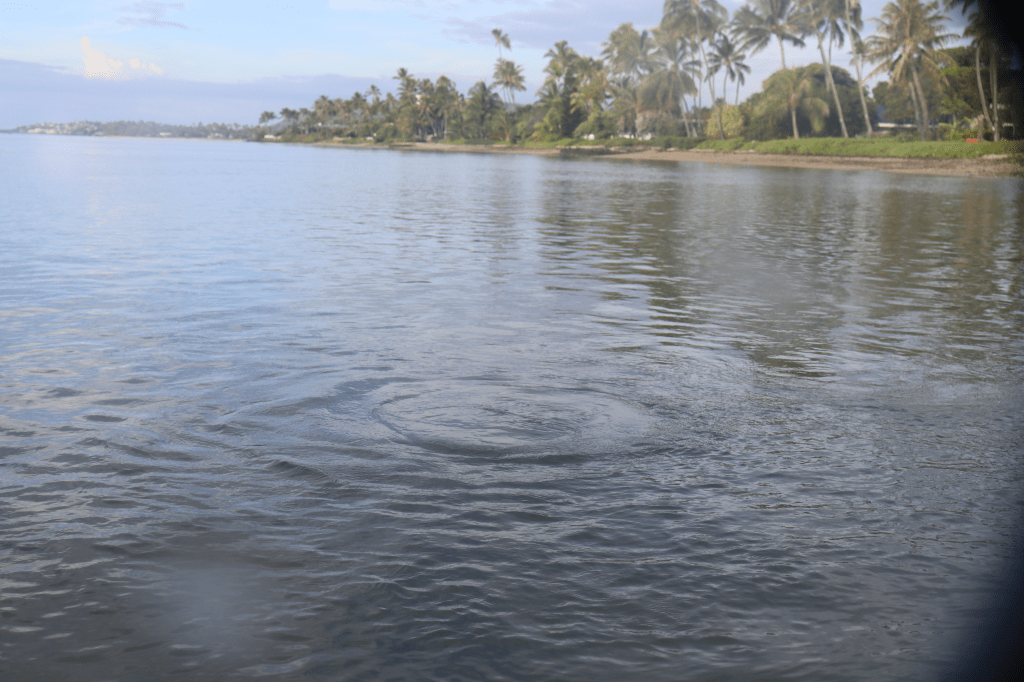 A boil of water at Waiʻalae ʻIki occurs where the submarine groundwater discharge spring enters the nearshore ecosystem. This brackish, nutrient rich water flows with enough force to cause a boil on the surface of the ocean.