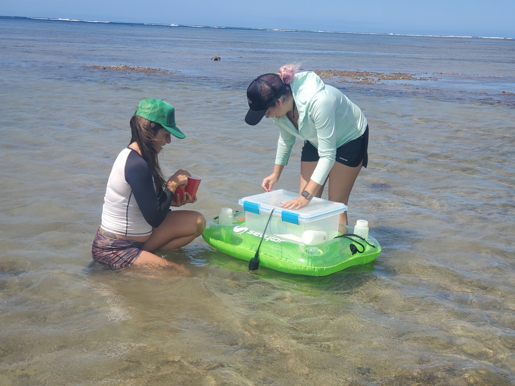 My work focuses on macroalgal physiological ecology at sites of Submarine Groundwater Discharge(SGD), springs that deliver fluxes of fresh, nutrient rich groundwater from the subterranean estuary to nearshore reef ecosystems. A prominent feature on Hawaiʻi’s coasts and worldwide on basaltic high islands and shorelines, SGD conditions are tidally driven and create highly dynamic conditions of salinity, temperature, pH, and nutrient availability. At SGD influenced sites macroalgae can be exposed to changes from 0 to 100% open ocean salinity over the tidal cycle, so how do these plants physiologically cope with this and other physical changes associated with SGD influence? This chapter measures integrated response in photosynthesis and tissue water potential(TWP) regulation by four species across a gradient of SGD influence at Wailupe beach, on the south shore of Oʻahu. Two closely related species pairs were examined for comparison, two of Hawaiʻi’s most prominent invasives which are prominent across this and other SGD influenced sites, Gracilaria salicornia and Acanthophora spicifera, and a sister genera to each, Hydropuntia perplexa(which we had hoped was the native limu Manuaea, Gracilaria coronopifolia, but molecularly turned out to be this recently discovered cryptic invasive), and the native Laurencia dendroidea.